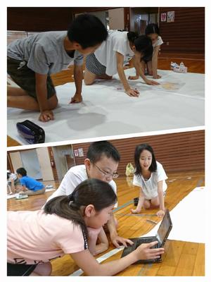 写真は、夏休み前に完成させた下絵をもとに、団画を制作する子どもたちの様子です。思い描いていたものを形にできる喜びが、子どもたちの会話からもどんどん伝わってきました!完成までの過程を、ずっと追っていきたいと思います!