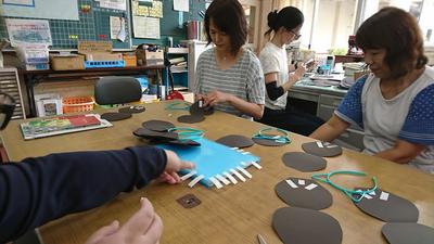 さて、写真は……先日運動会のダンス練習に汗を流されていた先生方が、今度は物作り中の様です!聞いてみると、運動会で使用する小道具作りのようです!そう言えば……夏休み中、何度も試行錯誤されていたあの道具!完成したようです!少しでも安全なものを!少しでも子どもたちが喜ぶものを!少しでも子どもたちの頑張りが伝わるものを!そんな先生方の思いがこもった道具です!運動会にお越しの際は、ぜひ、そんな道具にもご注目ください!
