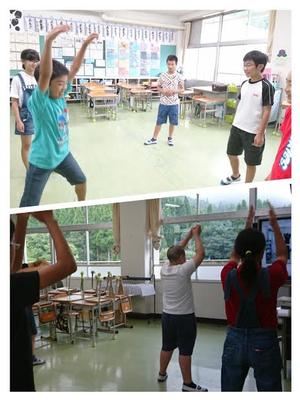 先生方は、夏休み開けの運動会に向けて、ダンス練習の特訓中でした!真剣そのもの!先生方のつぶやきも聞こえてきました。(ああ、難しい!でも、子どもたちはすぐに覚えるもんね!がんばろう!)写真は、掲載をお許しいただいたダンス担当の先生方のみです(^^;)