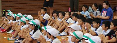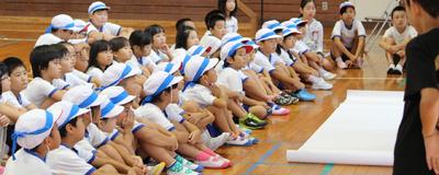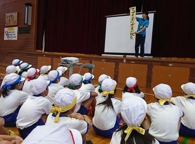 一校時の「夏休み明け集会」では、学年の代表者が夏休みの思い出と一学期後半の目標を発表しました。6年生の児童は、「小学校生活最後の運動会を、思い出に残るものにしたいです。」と発表しました。教頭先生のお話では、「夏休みの出来事を、友だちにたくさん話してほしい。友だちに伝えることや、友だちの話を聞くことで、自分との違いや似ているところに気づき、自分の考えや思いを膨らませてほしい。そして、そのことを、授業中の発表にも活かしてほしい。」と伝えられました。また、教頭先生が夏休みに、「英語で日記をつけること」にチャレンジしたと英語でスピーチされ、子どもたちからは、憧れの眼差しが向けらました!