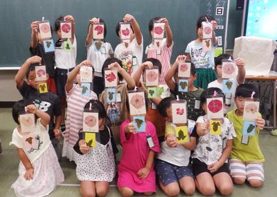 さて、写真は、アサガオの花の押し花で作ったしおりです!夏休み前に咲いたアサガオの花を押し花にして保存していたものを使って、素敵なしおりができました!子どもたちの思い出が、また一つ増えました!