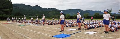 校長先生からは、「地域の方々を感動させる運動会に、そして、みんなが楽しむ運動会にしましょう。学校のテーマ『挑む』ということは、一生懸命に取り組むということです。一生懸命に取り組むことで、今年の運動会のスローガンを実現しましょう!」と話されました。