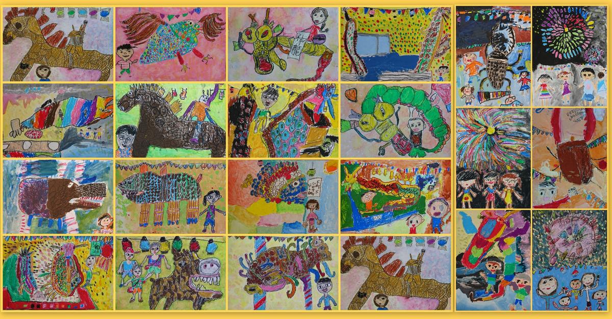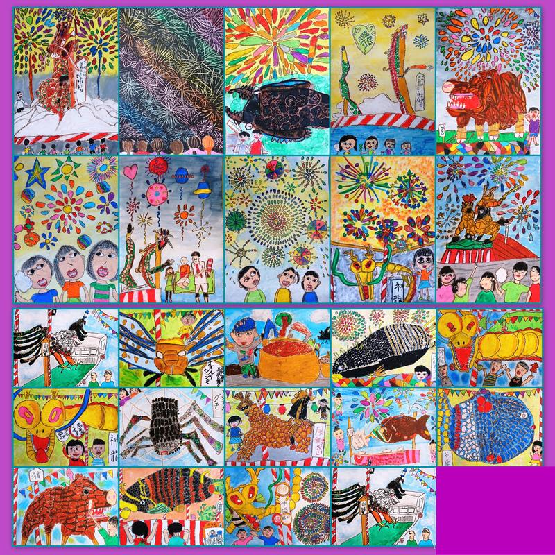 下の作品は、「熊日ちびっ子スケッチ展」に出品予定の3年生の作品です。祭りの様子や夏の思い出をおすそ分けいたします。