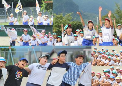 本校の本年度テーマ「(いどむ)」を背負って心を一つにがんばります!背中の「」は、本校、甲斐校長先生の書です!!運動会にお越しの際は、ぜひ、ご注目ください!「なぜ今年は赤?」何て質問もお受けいたします!