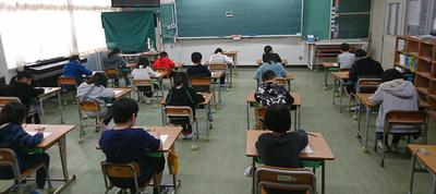 本日(1/31)、本校を会場に日本漢字能力検定協会主催の漢字検定を行いました。1年生~6年生までの67名が、10級~5級の検定に取り組みました。いつもは、たくさんの掲示物がある教室も、今日のために、掲示物をはずし、少し無機質だけれど緊張感のある受験会場に変身しました。