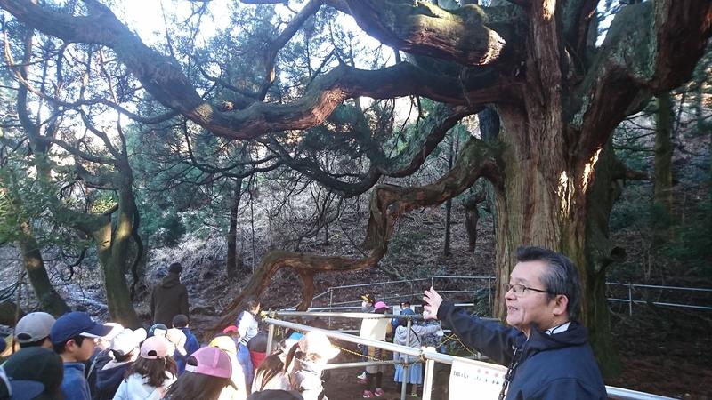12/23(月)、本日は、阿蘇の山々も雪化粧する冷たい朝となりましたが、澄んだ空気と真っ青な空の下、3年生の子どもたちは、校外学習に出かけました。行き先は、高森町村山にある『高森殿の杉』樹齢300年を超えるこの杉の木は、地域の方が大切に守ってこられたものですが、近年パワースポットとしても注目され、多くの観光客が訪れています。高森町で作成した道徳副読本『高森の心』で、この『高森殿の杉』について学習していた子どもたちは、実際の大樹を前にして、その雄大さに歓声を上げました。