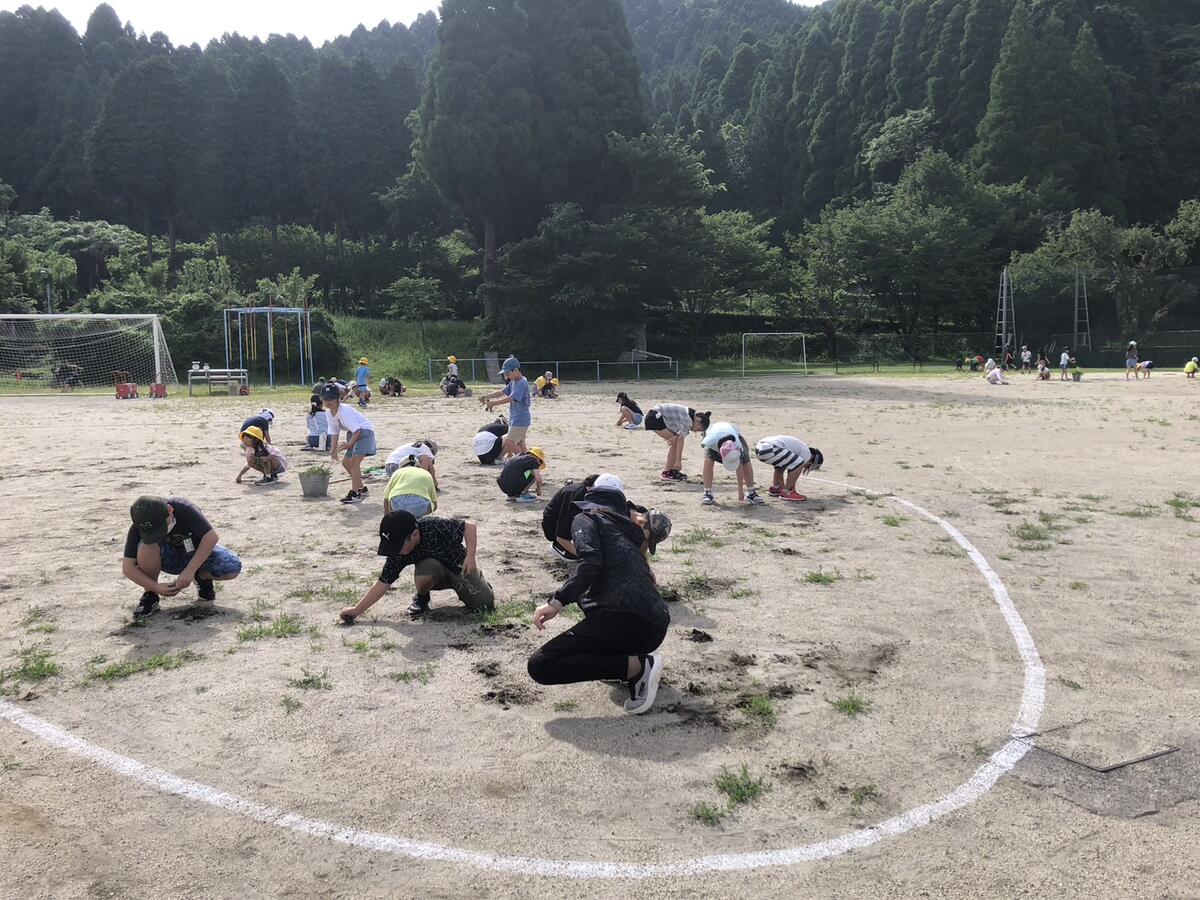 本日(7/18)朝の活動は、『縦割り班対抗 草取り大会』でした!!梅雨の時期に水をたっぷりもらって元気いっぱいの雑草、天気が良くなると子どもたちの遊びや運動を制限してしまいます。そこで、体育委員会の子どもたちが計画したのは、『縦割り班対抗 草取り大会』です!!朝の涼しい時間を使って、全校児童で一斉に草取りを開始しました!!これが、素晴らしい成果を!!やる気に満ち溢れる子どもたちの力って本当にすごい!!見違えるように美しくなりました!!