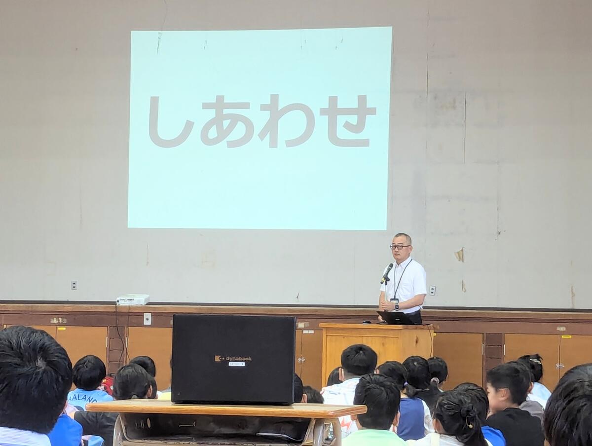夏休み前集会 ~校長先生の話『幸せになれる 4つの気持ち』~