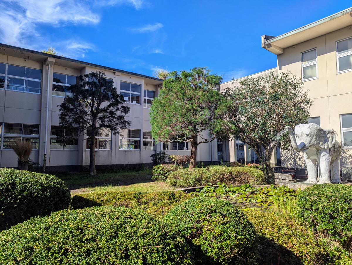 写真は、本日(8/22)の高森中央小学校です!!真っ青な青空と美しい緑!!昨日から学校の木々を選定していただき、緑の美しい高森中央小学校が一層輝いています!!象の池のぞうさんも嬉しそうに鼻から水を出しています!!きっと、もうすぐ始まる一学期後半が待ち遠しいのでしょう!こんなに美しい高森中央小学校で過ごすことができることが、とてもうれしくなる景色です!!