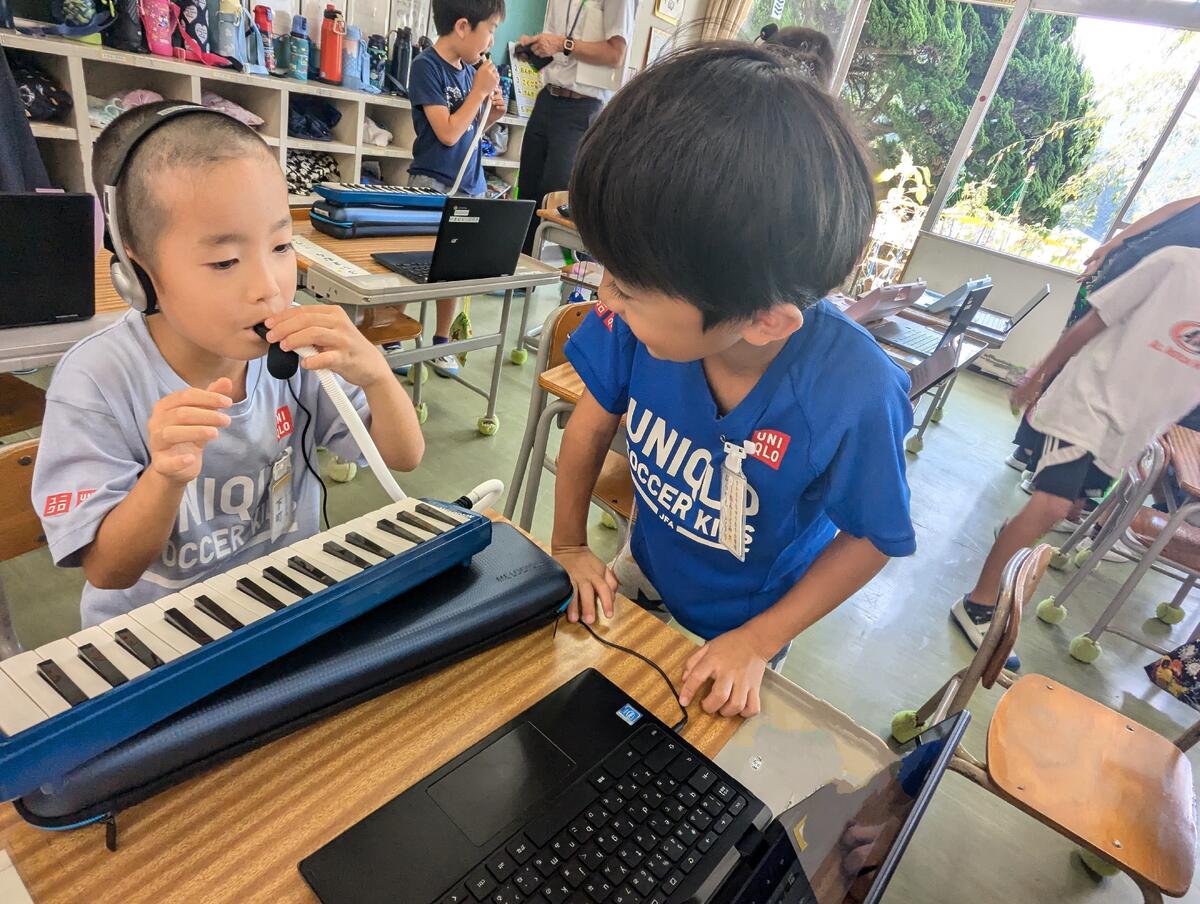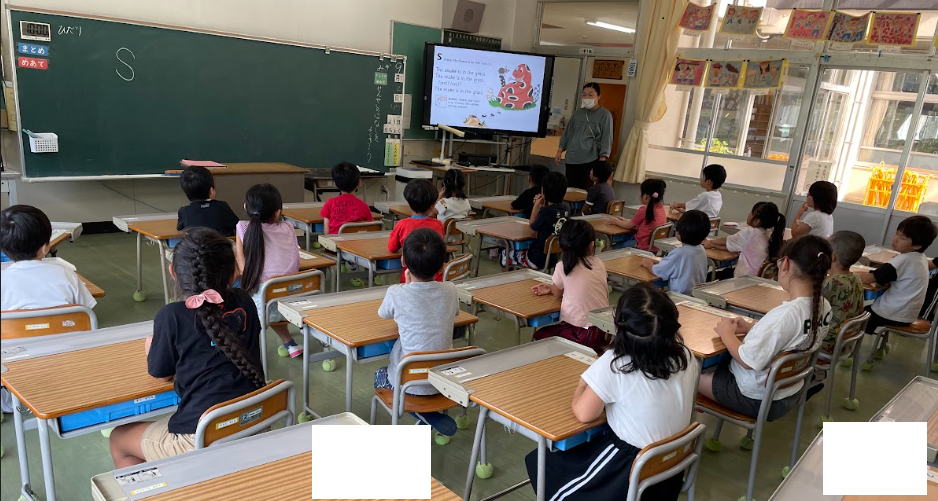 写真は、本日(9/2)1校時の1年生教室です!!たくさんの先生方に見守られて、初めての英語活動です!!就学前から、高森町の幼稚園や保育園で英語に触れる機会のたくさんあった子どもたち!!小学校に入学しても、たくさんの英語に触れることができることを知って嬉しそうです!!英語で自己紹介したり、じゃんけんをしたりしながらのコミュニケーションを、思う存分楽しむ姿が輝いていました!!