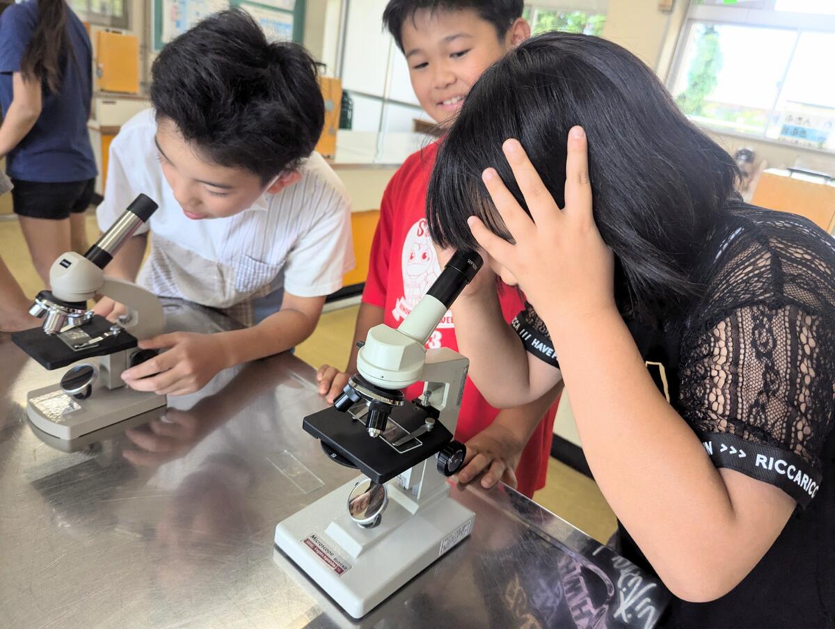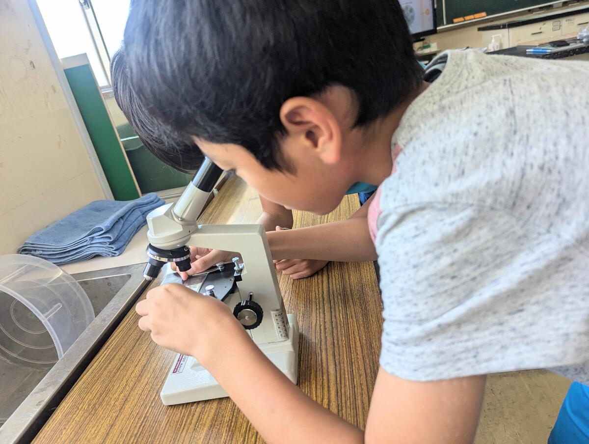 写真は、本日(9/6)6校時の5年生の様子です!!前時に教わった顕微鏡の使い方を活かして、花壇で採集した花粉をのぞきこんでいます!「わあ~いっぱい!!」「えっ、丸じゃない!!」「先生、見ますか?」たくさんの喜びの声があがっています。学んだことを活かして気づくことや発見することは、本当に楽しいことです!!(学ぶ喜びを存分に感じてほしい。)職員の願いがかなえられたと感じる瞬間がつまった素敵な時間でした!!