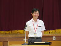 一校時の「夏休み明け集会」では、学年の代表者が夏休みの思い出と一学期後半の目標を発表しました。6年生の児童は、「小学校生活最後の運動会を、思い出に残るものにしたいです。」と発表しました。教頭先生のお話では、「夏休みの出来事を、友だちにたくさん話してほしい。友だちに伝えることや、友だちの話を聞くことで、自分との違いや似ているところに気づき、自分の考えや思いを膨らませてほしい。そして、そのことを、授業中の発表にも活かしてほしい。」と伝えられました。また、教頭先生が夏休みに、「英語で日記をつけること」にチャレンジしたと英語でスピーチされ、子どもたちからは、憧れの眼差しが向けらました!