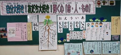 写真は、各教室で見つけた『道徳コーナー』の掲示です!子どもたちの学習シートや挿絵、板書等を有効に活用して、学びを振り返りやすい環境設営を心がけています!