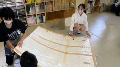 写真は、本日(5/9)4校時の運動会に向けてたリーダー活動の様子です。応援団リーダー・団画リーダー・表現リーダー、全員が一人一役責任を持って取り組んでいます。一人一人の考えを出し合い一つにまとめる姿、小さなゆがみも許さず丁寧に紙を張る姿、出来上がりを想像しながら踊りを考える姿、どれも頼もしく、運動会当日が楽しみで仕方なくなります。子どもたちが自主的に、そして創造的に活動する姿に、大きな成長を感じます!