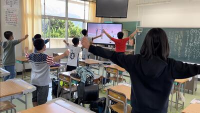 本日(5/9)6校時、今年度2回目の委員会活動を行いました!写真は、運動サポート委員会の様子です!教室でラジオ体操?そうです、運動会に向けて、ラジオ体操の練習をしているのです!