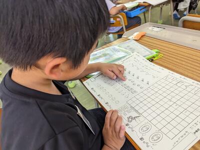 先週の金曜日(5/12)に4年生が行った草原学習の振り返りを、本日(5/15)行いました。実は…子どもたち、草原学習には出かけたけれど、目的の高森町に生息する絶滅危惧種『オオルリシジミ』に会うことができなかったのです。決して運が悪かったのではなく、なかなか見られなくなっていることを知った子どもたちは、その原因を知りたい、そして、自分にできることを考えたいと、休み中の自主学習ノートに自分の思いを綴りました。そして、その思いを本日一枚のシートにまとめました。
