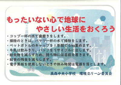 また、環境クリーン委員会から出された環境ISO宣言『もったいない心で地球にやさしい生活をおくろう』についても確認しました!