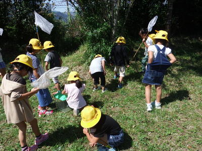 写真は、先週、1年生が生活科の学習で虫取をした様子です。新調された真新しい虫取り網を抱えて校庭に飛び出した子どもたちが捕まえたのは、秋の音色を届ける虫たちです。観察のために教室につれて戻ると、羽をこすり合わせて素敵な音色を聞かせてくれました。頭を寄せ合って虫かごをのぞき込む子どもたちのかわいらしい姿に思わず笑顔になりました!