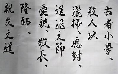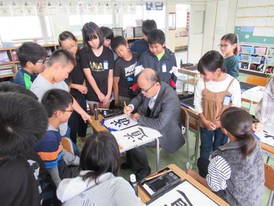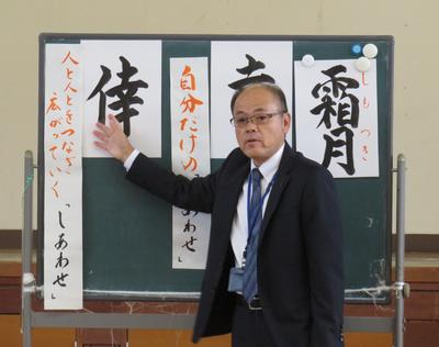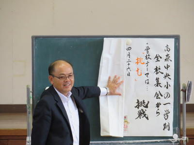 本日の講話では、写真の漢詩(2500年前のもの)を導入に、新たな「挑」としての掃除の取り組み方について話されました。漢詩と聞けば、小学生には難しいイメージがありますが、一つ一つの言葉を子どもたちと共に追いながら、読み解いていかれる校長先生の話の進行に子どもたちは引き込まれ、低学年の子どもたちからも書かれたことを予想する声が聞かれました。子どもたちの学ぼうとする姿に感動すると同時に、職員にとっては、学習の進め方や準備の大切さについても学ぶ時間になりました。