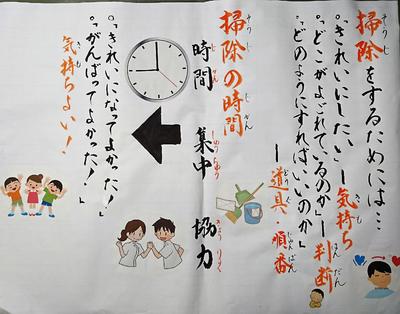 本日この講話を聞いた後の掃除は、どの学年も心を込めた丁寧なものとなりました。これからも続けていくことで、掃除の行き届いた美しい高森中央小学校を伝統にしていきたいと感じました。