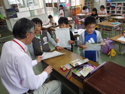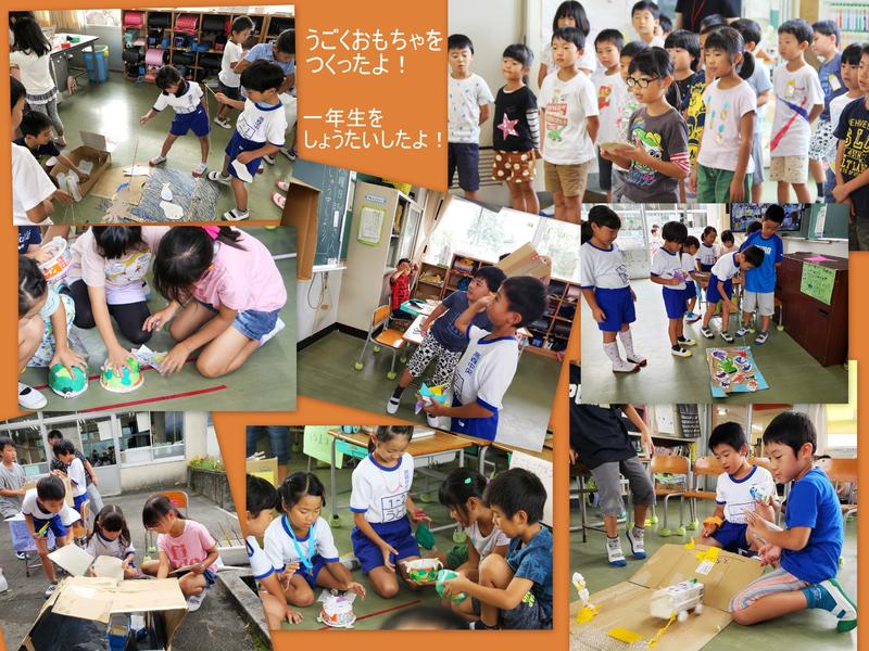 写真は、2年生の生活科『うごくうごくわたしのおもちゃ』発表会の様子です。2年生の子どもたちは、(生活科の時間に製作したおもちゃを、1年生に使ってほしい!)と、発表会の場に1年生を招待しました。大切に大切に、丁寧に丁寧に作り上げたおもちゃです。教科書の設計図を見ながら、ちょっとだけ苦労しながら作り上げたおもちゃです!もちろん、1年生は大喜びしてくれました!2年生になって、またまた大きく成長した2年生です!