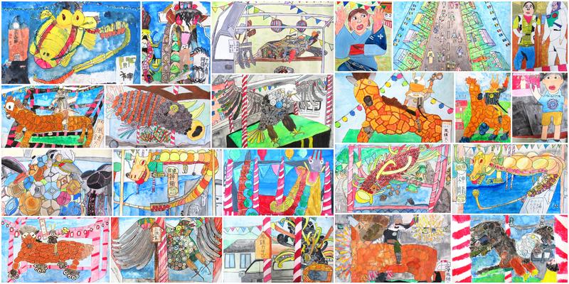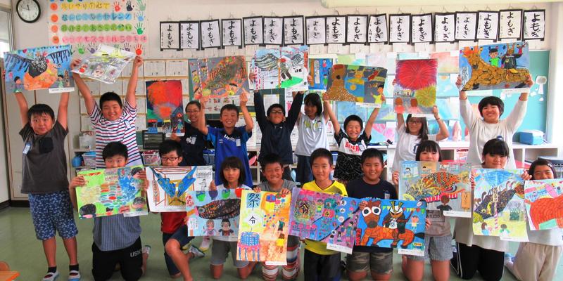写真は、高森町で開催される熊日ちびっ子スケッチ展に向けて4年生が描き上げた作品です。日用雑貨で作られたやま(つくりもん)や花火、肥後にわかを描いています。絵の具を使う経験も増えて、淡い色合いや複雑な色合いも表現できるようになった子どもたちです!