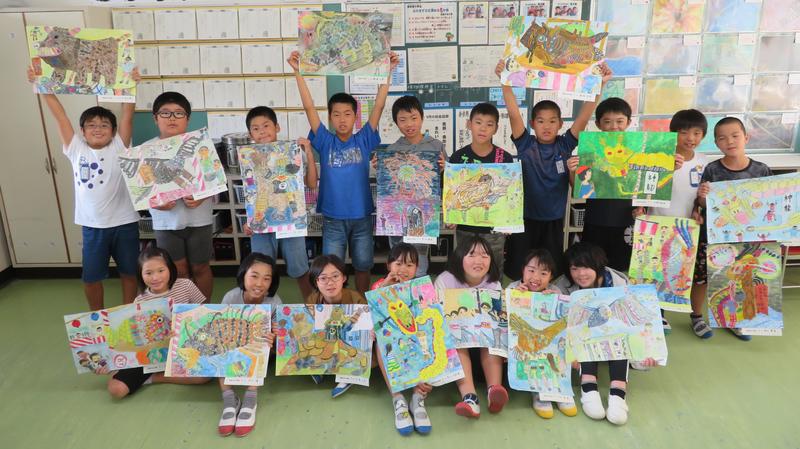 高森中央小学校のムードメーカー5年生!が元気いっぱい描いた「夏の思い出」です!全員が完成した日に、記念に1枚写真撮影しました!