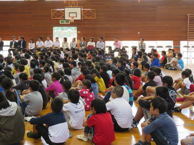 11/18(月)5校時、熊本県教育庁文化課『生き生き芸術体験教室』が本校体育館で行われました。町内の高森幼稚園、高森保育園からも年長児を迎えて、全校児童で素晴らしい時間を過ごすことができました。