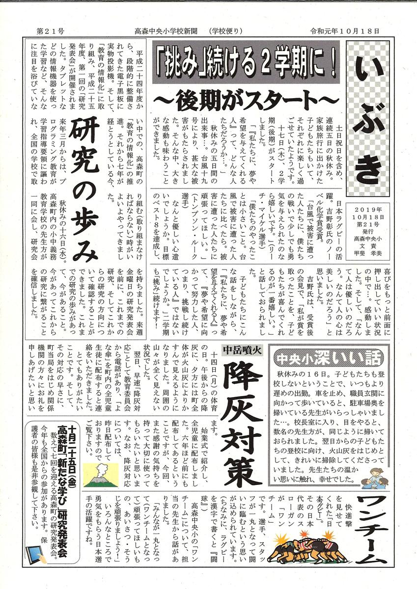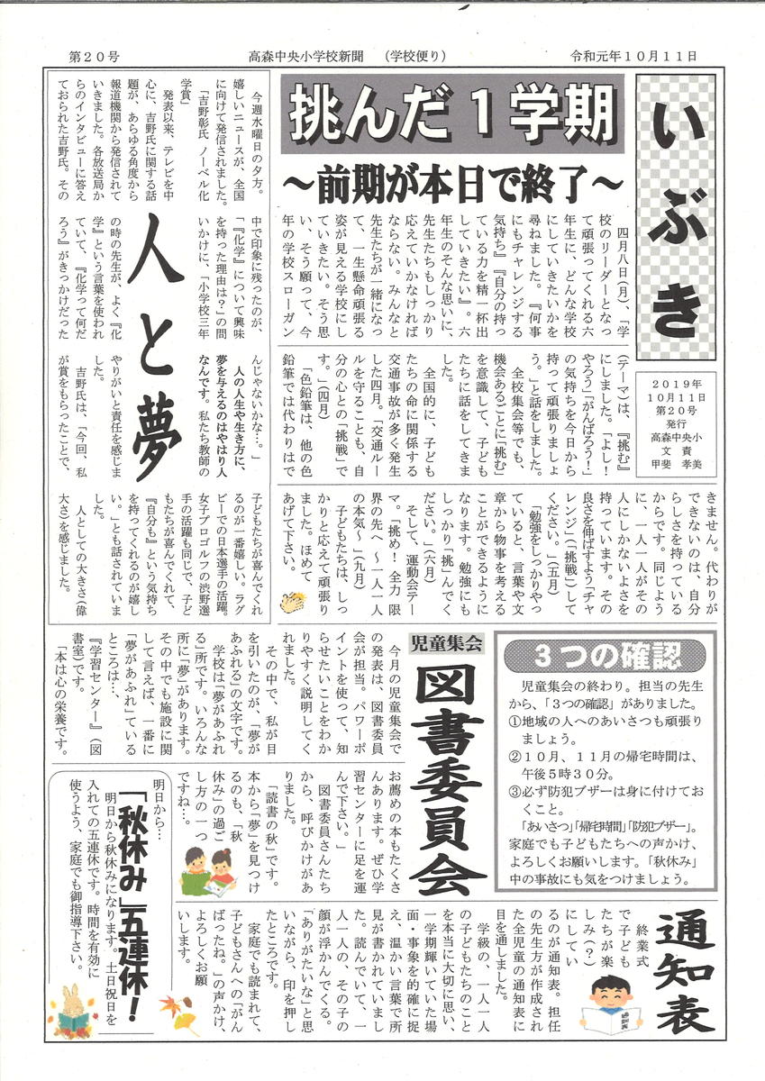 学校便り『いぶき』第18号