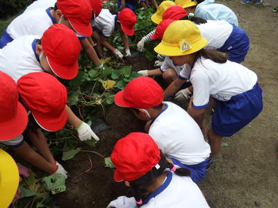 3年生の高森ふるさと学(総合的な学習の時間)では、JA青壮年部の方のご協力を得て、高森町伝統の大豆「みさを大豆」を植え、収穫・加工までを行います。また、『丸美屋』さんのご協力を得て、大豆やその生長・加工について専門的な知識を子どもたちへ伝えていただいています。