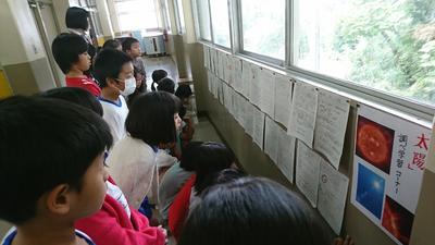 『月と太陽』の単元を学習中の子どもたちは、教科書を存分に活用して月と太陽について調べ、学習シートにまとめました。学習を進めるうちに、子どもたちの興味は、教科書では多くを扱われていない詳しい内容にまで広がり、今度は、タブレットPCを活用して調べ、更に学習シートにまとめました。太陽の内部の構造について調べた子ども、表面温度に興味を持った子ども等、それぞれの学びが集まると素晴らしい資料のようです!まとめたシートは、今後、理科室に掲示します!