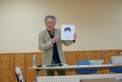 漫画キャンプって何だ!行事予定表をご覧になって気になられた方もたくさんいらっしゃることでしょう!実は、10/29(火)に、上色見総合センターを会場に行ったこの取組、専門家(漫画家)の山口育孝さん(長崎県在住)に、漫画家の仕事について教えていただいたり、先生方の似顔絵を披露していただいたりする子どもたちが興味津々の漫画教室!高森町と漫画出版社コアミックスなどが開催するイベントで、今年が2年目になります!