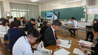 と、本授業と本校の研究についてお話をいただいた上で、国語科の授業のあり方・新学習指導要領についてもわかり易くお話をいただきました。新学習指導要領を先行して行う本校の教育研究についても、「先生方の試行錯誤が、来年度の研究に繋がると思います。」との言葉をいただき、大きな励みとなりました。