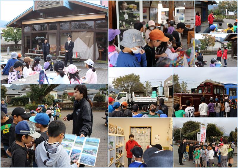 11/7(水)午前中、2年生42名は校区探検に出かけました!目指したのは、高森駅!運転士の方に出会うこともできました!「どうして運転士さんになったんですか?」そんな子どもたちの質問に、運転士の方は「ちょうどみんなと同じ2年生のときに南阿蘇鉄道に乗って、運転士をめざしたんだよ!」と話していただき、子どもたちからは歓声が上がりました。また、日頃は見られない軌陸車(線路に積もった火山灰を掃除する車両)を見せていただくこともできました。