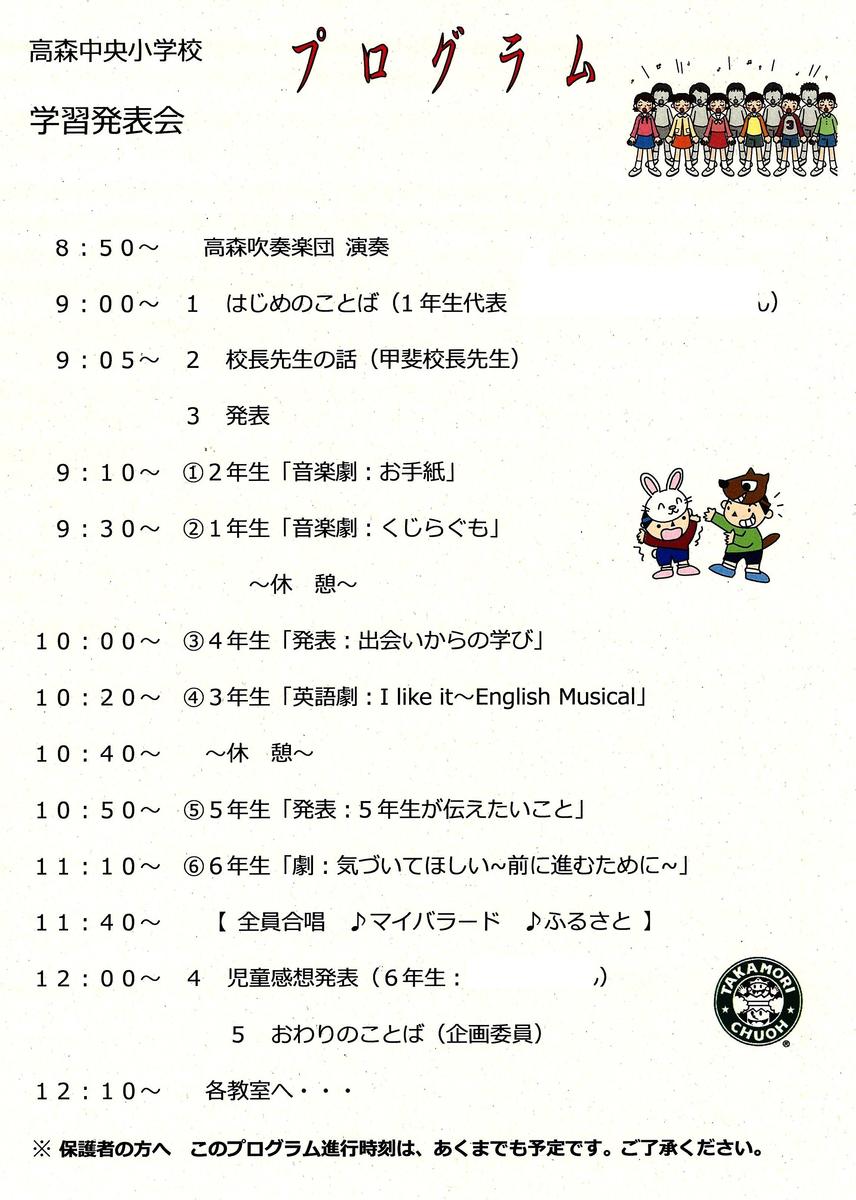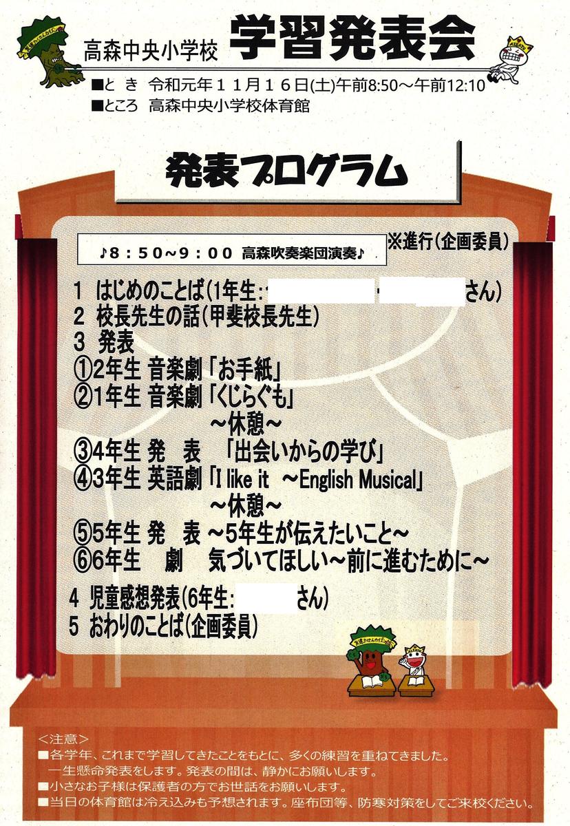 学習発表会は本日終了いたしましたが、高森中央小学校は学校の様子を多くの機会に発信して参りたいと思います。今後も、変わらず、高森中央小学校の教育活動を支えていただきますように、お願いいたします。