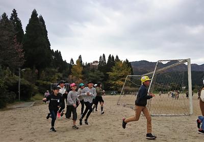 写真は、11/18(月)本日の朝活動の様子です。全校児童が、運動場を自分のペースを守りながら走っています。健康観察を終えてからすぐに運動場に飛び出し、音楽に合わせて10分間走を行います。この取組は、12/6(金)に行います持久走大会に向けた取組の一つです。子どもたちは、走った運動場の周数だけ頑張りカードのこまをぬります。毎朝の登下校や体育の時間、地域のスポーツクラブでの取組等で体力向上に努めている子どもたちですが、朝のランニングタイムでも、さらに体力向上に努めてほしいと思います!職員も子どもたちと一緒にがんばります!