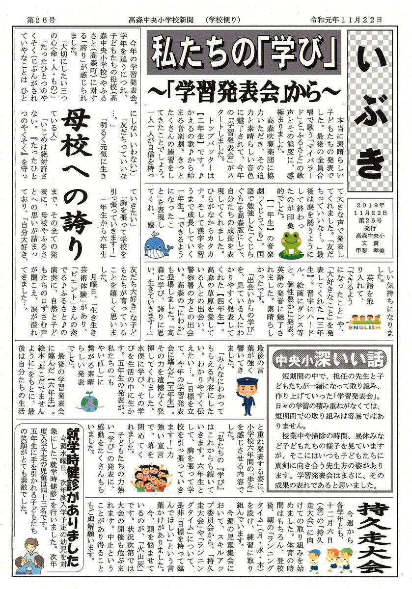 学校便り『いぶき』第26号