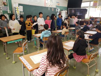 後ろから参加してみると、プレゼンテーション練習をしていました。来週末に行われるパナソニック財団主催のプレゼンテーションコンクール最終選考に本校から2名が選出されました。その一人が一生懸命練習をしているところでした。周りの子どもたちからは厳しくも温かいアドバイスが飛びます。みんなで支える心温まる場面でした。素晴らしい発表になることを確信した昼休みでした。