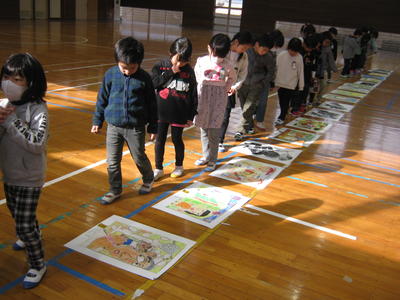 1/16(木)、朝の活動は、縦割り班遊びでした。高森中央小学校では、1年生から6年生までが一緒に活動する12の縦割り班があります。それぞれの班が、縦割り班旗を作成し、運動会などの行事に取り組んだり一緒に遊んだりするもので、子どもたちにとっては楽しみで仕方ない時間です。
