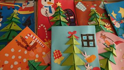 子どもたちの大切な人へのメッセージはお見せできませんが、図工の時間に作成したカードの表紙をご覧ください!