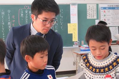 写真は、1/15(水)、5校時に5年生が行った、鹿児島大学教育学部の大学院生とのプログラミング学習の様子です。