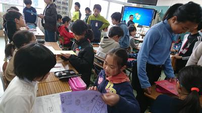 本日の授業は、初任者研修の一環で、2名の先生方をお迎えしての授業でした!子どもたちは、いつもにも増してやる気十分!最後には、2名の先生方と一緒に写真撮影もして、充実した学習となりました。本日、子どもたちが作った作品を、ご家庭に持ち帰っています。ぜひ、ご家庭でも話題にされてください!