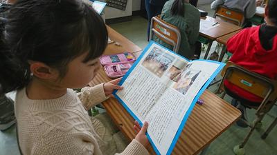 さて、思いがけず素敵なおくりものをもらった1年生は、もちろん大喜びです!手にした子どもたちは、それぞれの『しかけカードの作り方』の内容の違いに気づき、友だちのものも、のぞき込み始めました。(どれも作ってみたい!)そんな子どもたちの思いに応えるために、しばらくは教室で保管してみんなで楽しむことにしたとか!2年生の思いは、しっかり1年生に届いたようです!