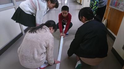 写真は、1/14(火)、連休明けの朝のショート委員会の様子です。5・6年生の子どもたちが、短い時間でもできる各委員会の活動を考えて取り組んでいるこのショート委員会、本日の生活委員会(安心・安全委員会)は、廊下の中央線テープの張り直しを行っています。子どもたちが廊下を安全に歩くことができるように貼られているこのテープも、定期的なメンテナンスが必要ですが、生活委員会の子どもたちのおかげで、いつも整えられています。
