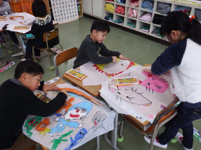 1/16(木)、1・2校時に1年生の子どもたちは、凧揚げに向けて『凧』に絵付けを行いました。空に高く高く上がった姿を思い浮かべながら絵付けをする子どもたちの表情は、笑顔いっぱいでした!!子どもたちに凧揚げの体験をたずねてみると、数名が手を上げました。昔に比べたら、この高森町でも自由に凧を揚げることができる場所が減ったなあと感じます。そう考えると、学校で体験することの大切さや役割も大きいなあと感じます。