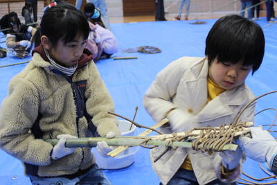 前半の座学では国立阿蘇青少年交流の家の方、グリーンストックの方から野焼きの意義やそこに携わる人々の思いについて教えていただきました。後半は体育館での「火消し棒」の製作。野焼きで活用する大切な道具です。グループの仲間と協力をして、心を込めてつくりました。2月の本番では、今日の学びを生かし、楽しく有意義な学習にしたいと思います。