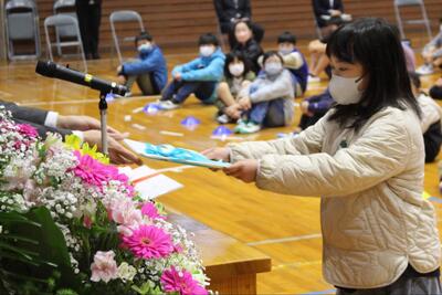 校長先生からは、全児童の通知表に書かれていた内容からがんばりや成長を感じたとほめていただきました。