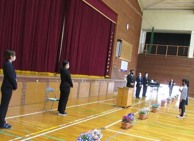 4/11(月)、本日、43名の1年生が入学しました。感染症予防の観点から、2~5年生が入学式に参加することはできませんでしたが、保護者の皆様に見守られ、43名の子どもたちは、元気いっぱいの返事を響かせました。また、入学式後には、姿勢を正し、瞳を輝かせて担任の話に聞き入る姿も見られ、たいへん頼もしく感じました。
