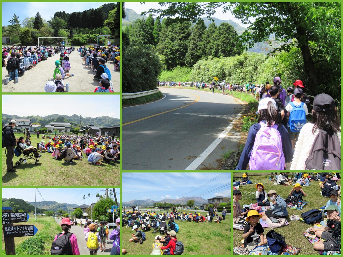 5/16(火)、本日は、晴天です!阿蘇の新緑が美しい季節がやってきました!この素晴らしい環境の中で、本日は、運動会の全体練習の2日目を迎えました!今日の全体練習は、全校で行う団体競技の練習と、赤団・白団に分かれての応援団練習を行いました!子どもたちが最も好きな練習とも言っていい2つの競技の練習とあって、運動場中に歓声が響き渡っていました!