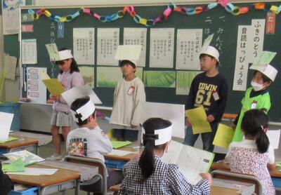 写真は、2年生の発表「『みーちゃんのランドセル』を学習して学んだこと」の様子です。『みーちゃんのランドセル』は、高森町在住の方が作られたもので、高森町の人権学習の共通教材として大切に取り組んでいる紙芝居です。これからも、大切に受け継ぎ、守っていきたい宝物です!